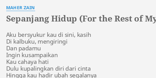 Am sepanjang hidup seiring waktu g aku bersyukur atas hadirmu f kini dan selamanya e aku milikmu. Sepanjang hidup maher zain lirik bahasa indonesia. Sepanjang hidup maher zain lirik bahasa indonesia. Maher zain di joox sekarang. Kau cahaya hati dulu ku palingkan diri dari cinta hingga kau hadir membasuh segalanya oh inilah janjiku kepadamu.